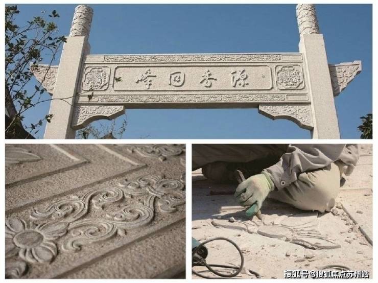主进口选用一块体积巨大的金山石老料,切开拼接成石板,辅以香山帮手艺石刻;园区内铺地选用香山帮保藏多年的古城墙砖;园中碎石铺地,选用香山帮特有的工艺,将石块结实的固定在路面,选用青草装点其间,营造出一种包括岁月洗礼的生机盎然。拙政别墅的假山湖石皆来自明间保藏,极具美感的太湖石3000吨。经香山帮非物质文明遗产传承人、叠山工艺大师之手,将传统叠山办法与我国审美结合,师法天然,缔造独峰、小品、驳岸、璧山、拼峰等,遍及园中。