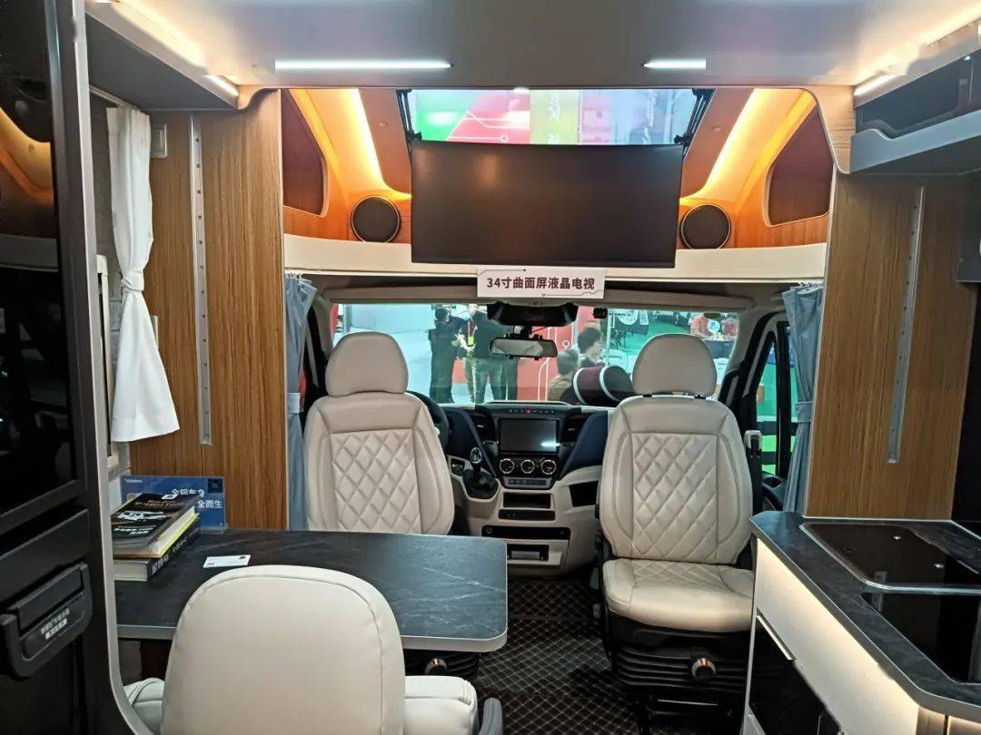 车身采用了高保温铝制骨架以及PVC龙骨厢体,大额头处做了全景天窗设计,驻车时能够外推打开,为车内带来更好的通风换气效果。内饰雅致大气,客厅区配备双人航空座椅+双人吧台座椅,也可选4人对坐商务椅,座椅选用高级材质,符合人体工学,还附带按摩功能,旅行时累了可以平躺在此,深度放松身心。厨房区位于客厅的旁边,采用一体化设计,“洗、切、蒸、烤”一气呵成。全车采用智能化控制管理系统,通过10寸控制屏可以实时监控车辆状态,并具备远程控制功能。智能化操作,让出行更放心。
