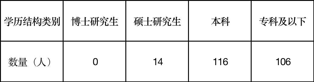 ——缺乏高学历人才队伍。大元泵业研发人员年龄结构尚可(见表1),但在学历结构方面,2021年公司员工情况中显示(见表2),236名研发人员中,博士学历0人,硕士学历共14人,本科学历116人,专科及以下学历共106人,可知,硕士及以上学历的研发人员占研发团队总人数的5.93%。而“氢能源”赛道中别的企业中,致远新能高学历研发人员占比为51.76%、亿华通43.53%、雄韬股份42.53%。由此可见,相比同行业别的企业,大元泵业研发队伍中高学历技术人员数量偏少,还需加强对于高层次研发人才的培育。
