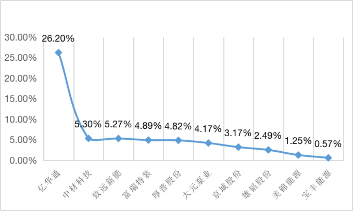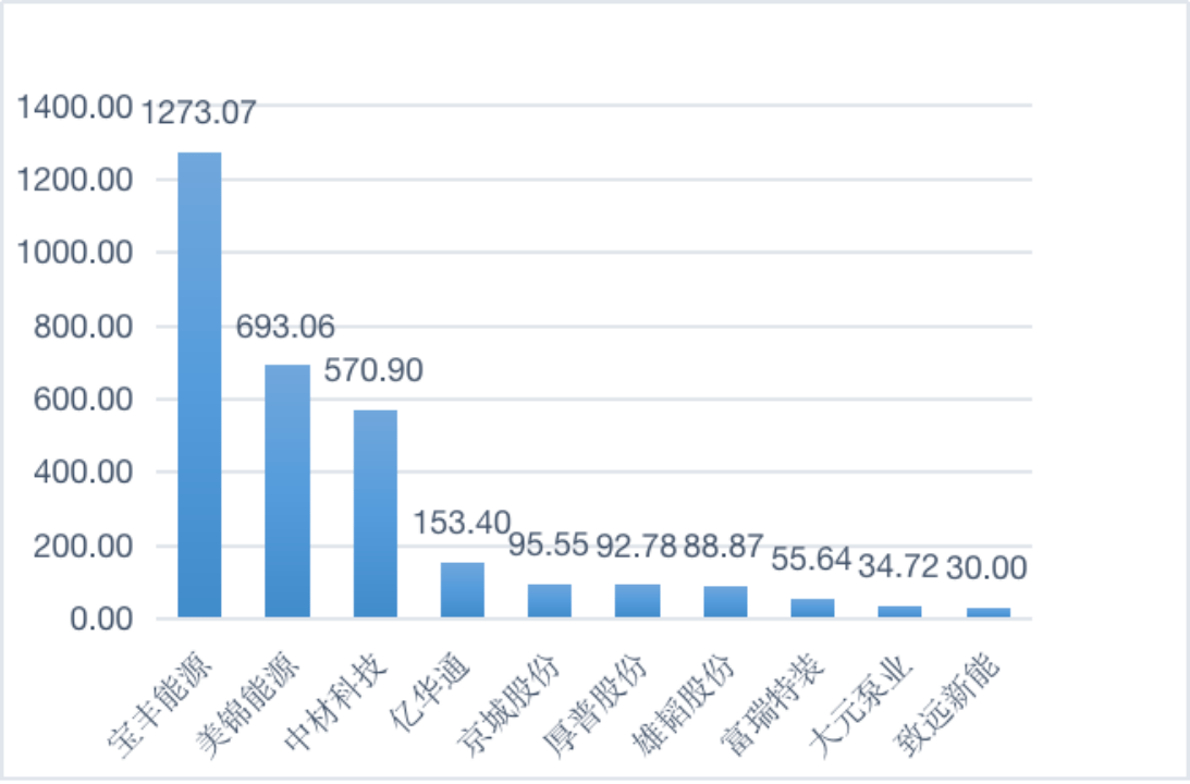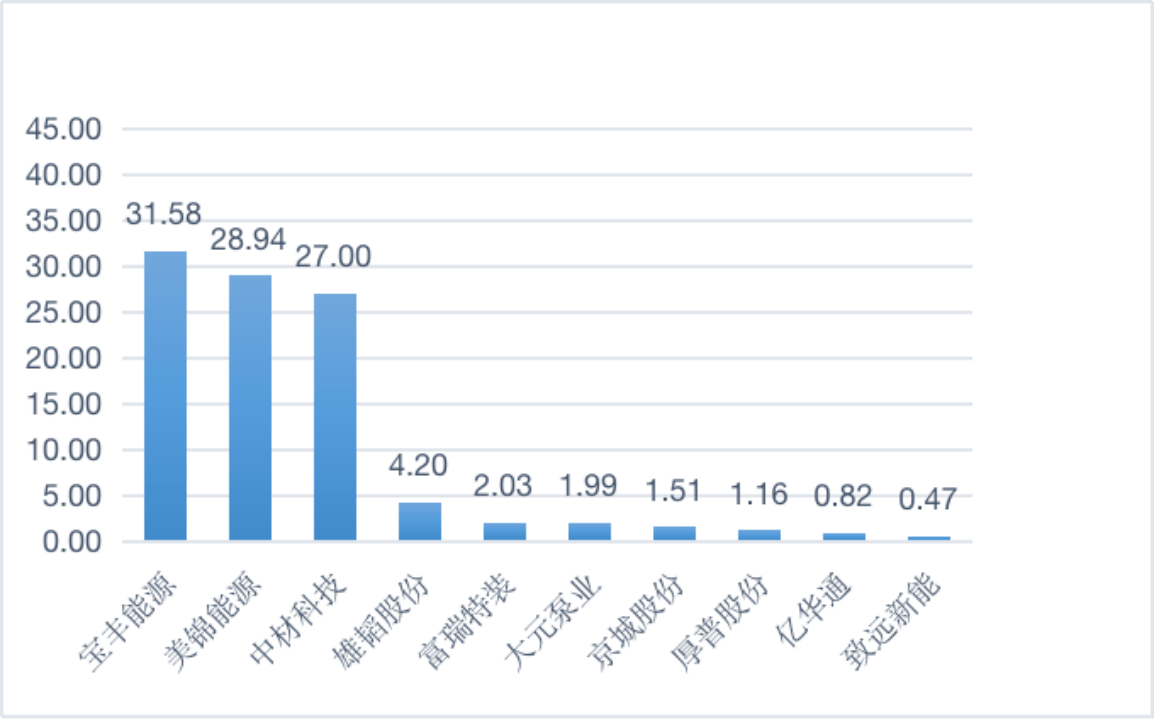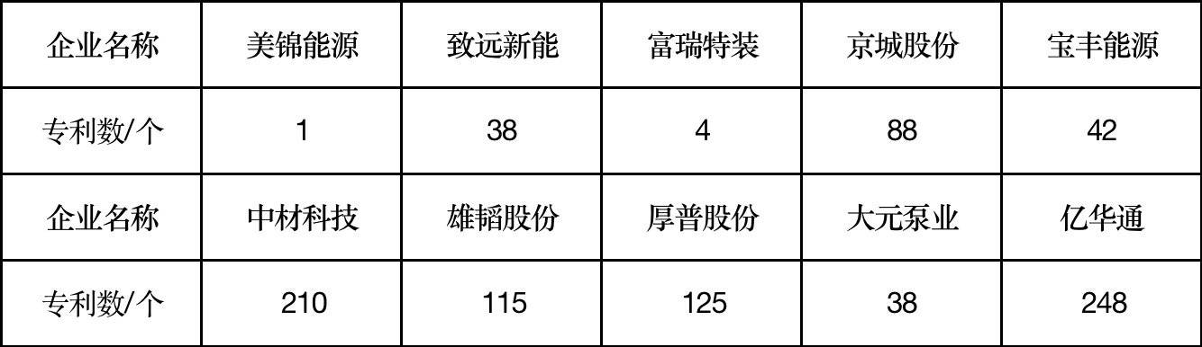 ——发明专利偏少。在“氢能源”赛道企业专利数目一览(见表3)能够正常的看到,2021年大元泵业的专利数目为38个,在赛道内处于中等一般层次,与中材科技、雄韬股份、厚普股份、亿华通等企业还存在比较大差距。